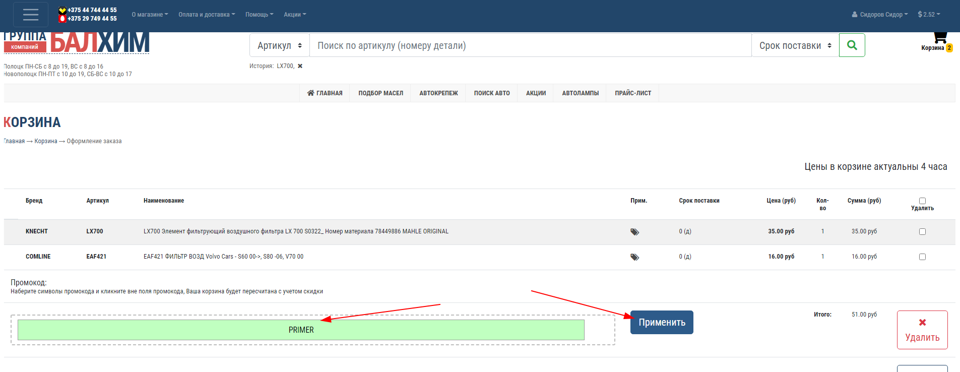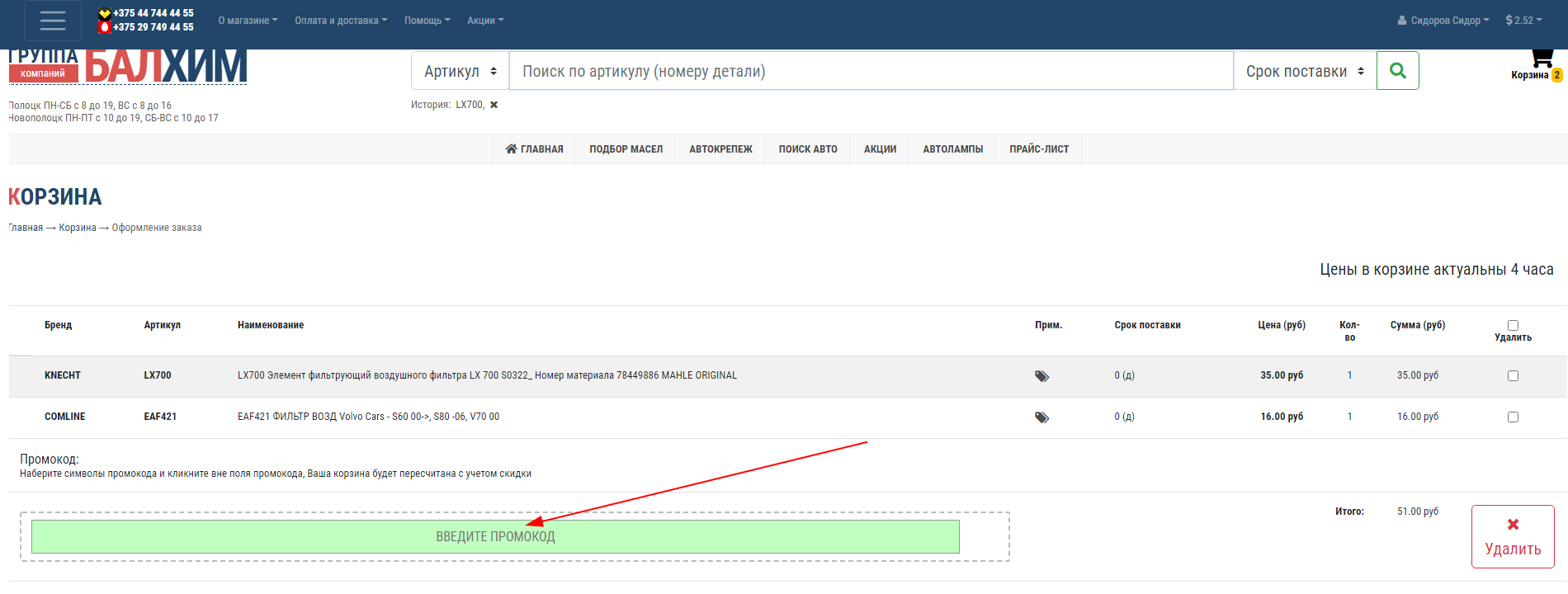 ВНИМАНИЕ! Перед вводом промокода настоятельно рекомендуем обновить страницу браузера комбинацией клавиш ctrl+F5