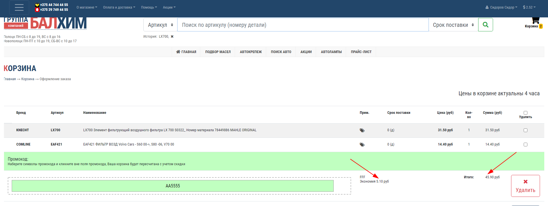 ШАГ №7 проверяем сработал ли ПРОМОКОД.