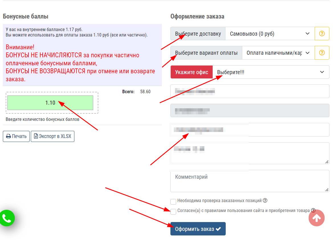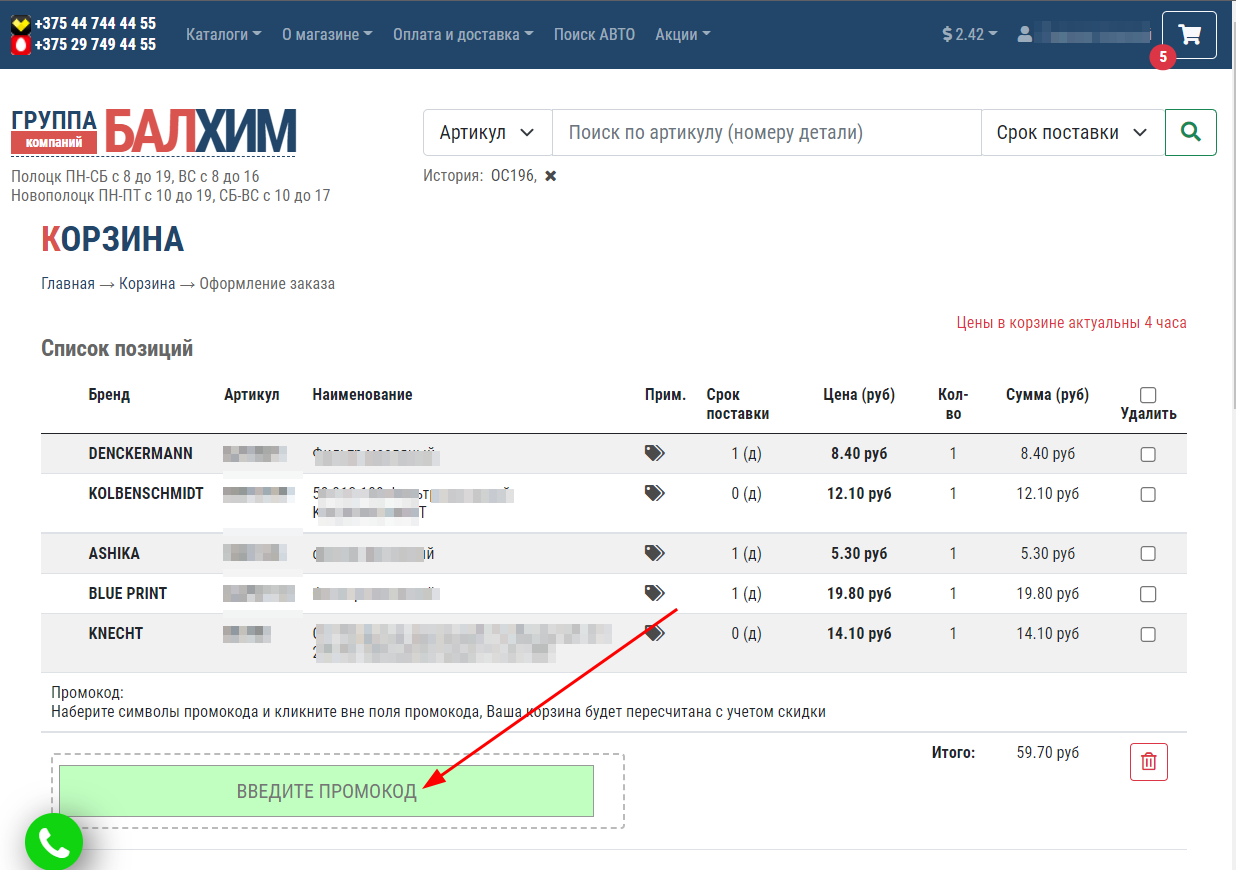 Нажмите кнопку применить. при этом страница обновится. Вы увидите сумму скидки и прересчитанную стоимость товаров. Затем выберите офис и другие необходимые опции из формы отправки.