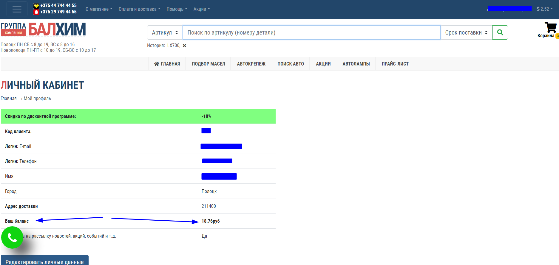 — Все начисленные бонусные баллы накапливаются в вашем Личном кабинете.